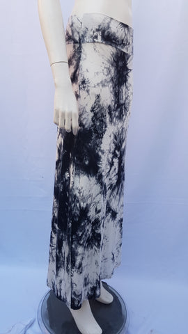 Falda larga de mujer con pretina ancha a la cintura. Confeccionada en Jersery algodón delgado en tonos blanco y negro. Para utilizar en ocasiones casual y de vestir.