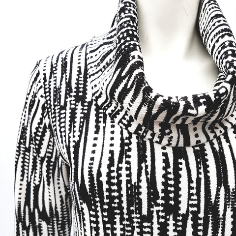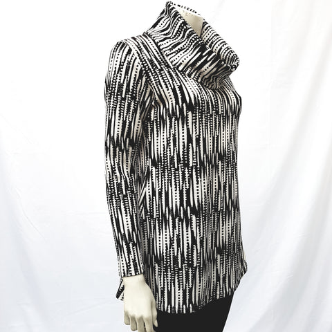 Polera larga con cuello tortuga y manga larga. Confeccionada en tela Sofía. En colores blanco y negro