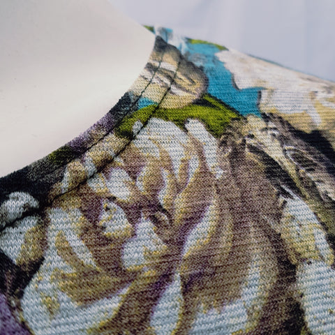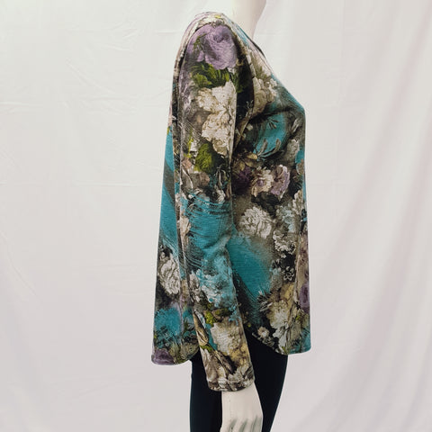Polera clásica con cuello-escote redondo, manga larga, ruedo rebajado en costados. Confeccionada en lanilla en tonos beige, ocre, morado, calipso.