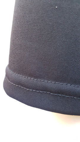 Polera negra manga tres cuartos, escote rendondo, corte princesa.
